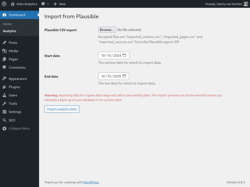 One of them is the ability to import your historical data from Plausible Analytics. Plausible allows you to export your analytics data to a ZIP archive containing several CSV files, which you can now upload to Koko Analytics to have them imported.